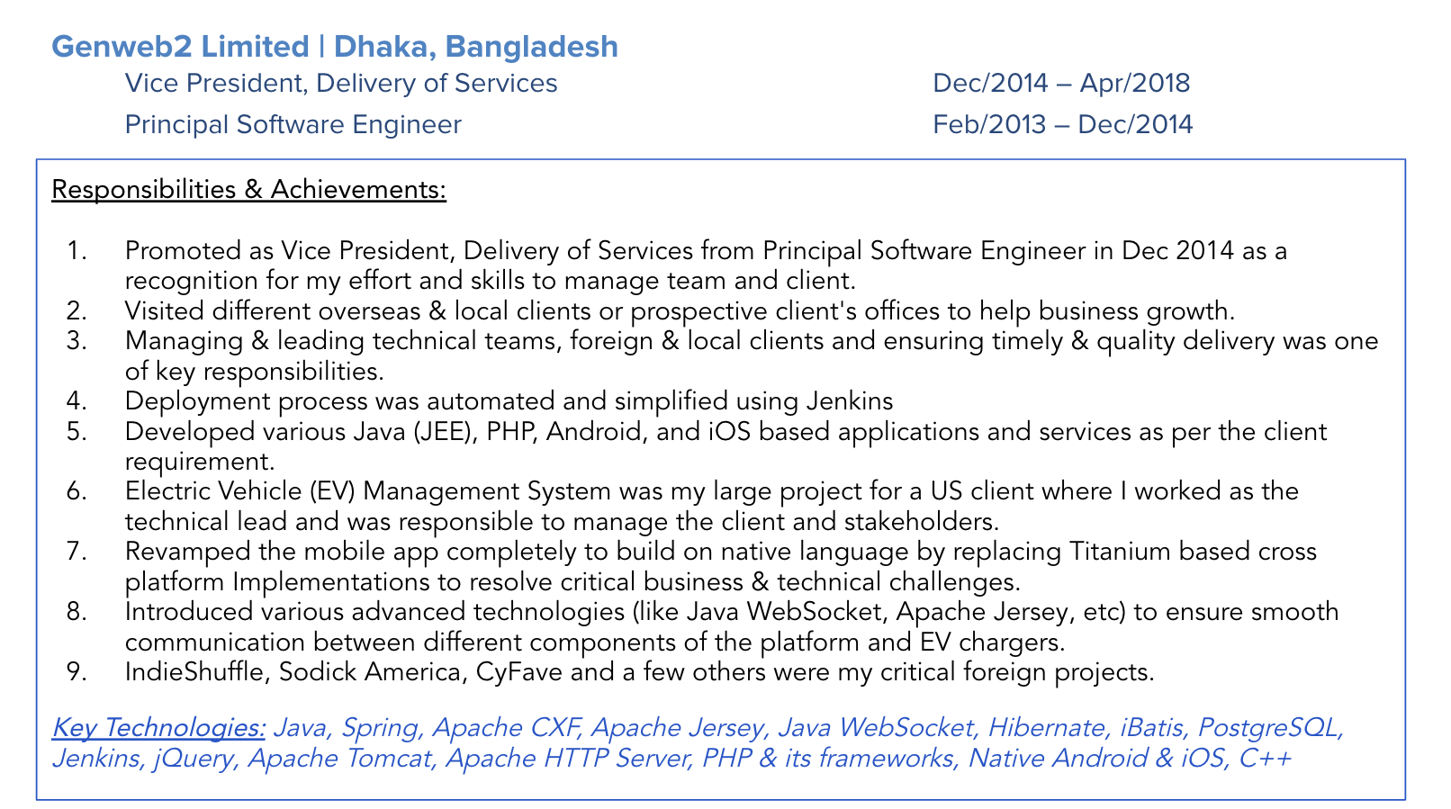 Rashedul and his team were part of my software team at CarCharging. They were in charge of an enterprise web-application written in Java/Apache Tomcat. Rashedul was my main point of contact with the team.